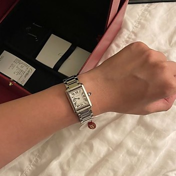 까르띠에 탱크 머스트 워치 29.5mm 화이트 다이얼 쿼츠 메탈 시계 WSTA0051