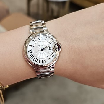 계속 찾던건데 로얄샵에 있어서 구매햇습니다 !! 퀄리티 너무 만족해요 정말 정품이라고 하고 다닐려구요 ㅎㅎCARTIER 까르띠에 발롱 블루 드 33mm 화이트 다이얼 오토매틱 가죽 스트랩 시계 W6920097