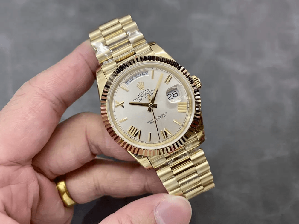 • GM공장 롤렉스 데이데이트 실버 로만 다이얼 옐로우골드 40mm V3(텅스텐 헤비 버전) 228238