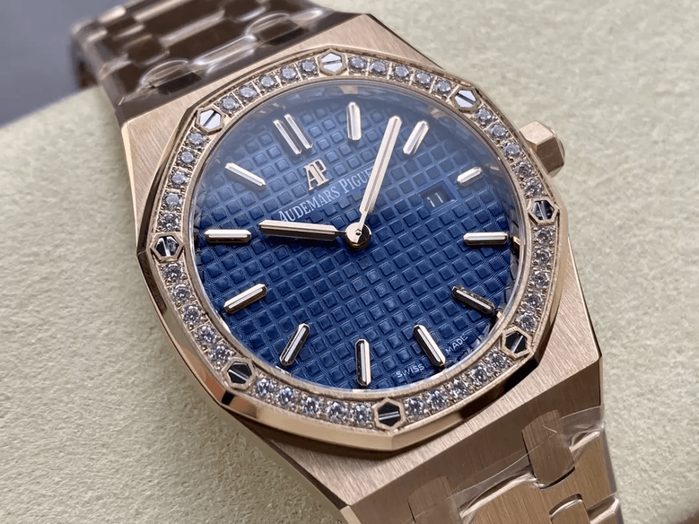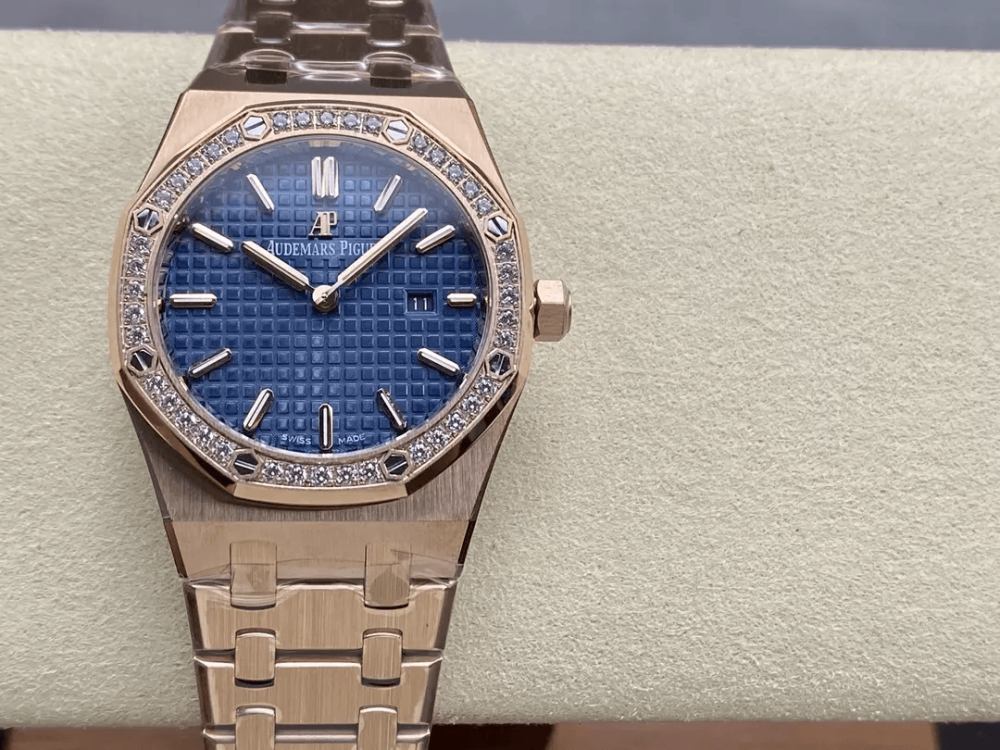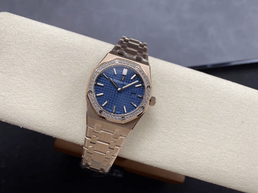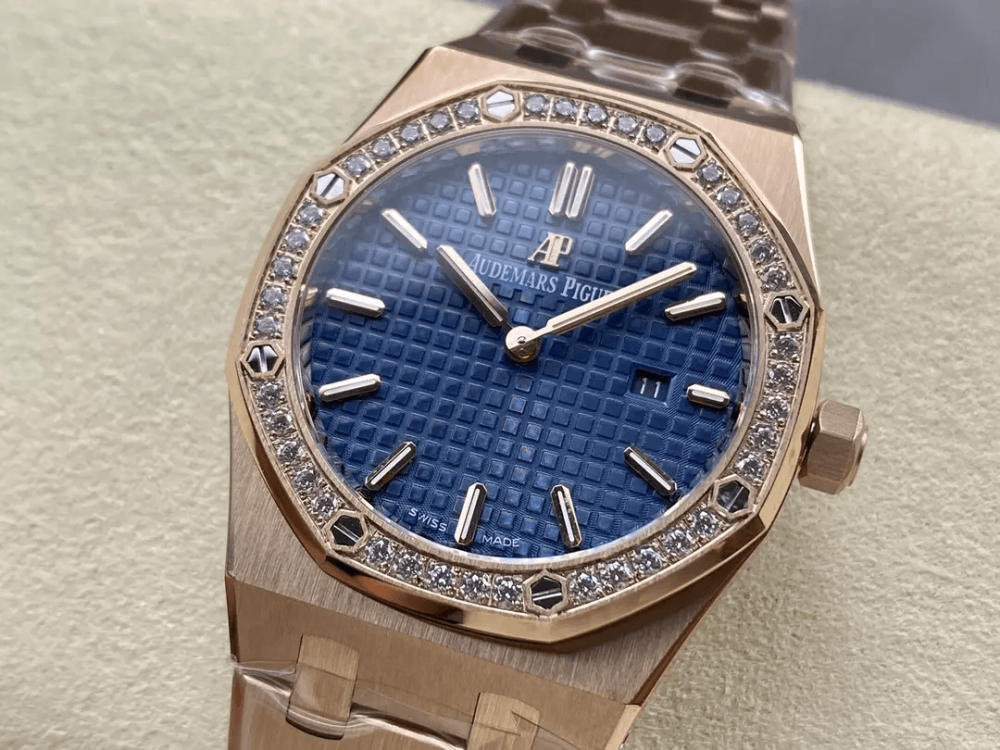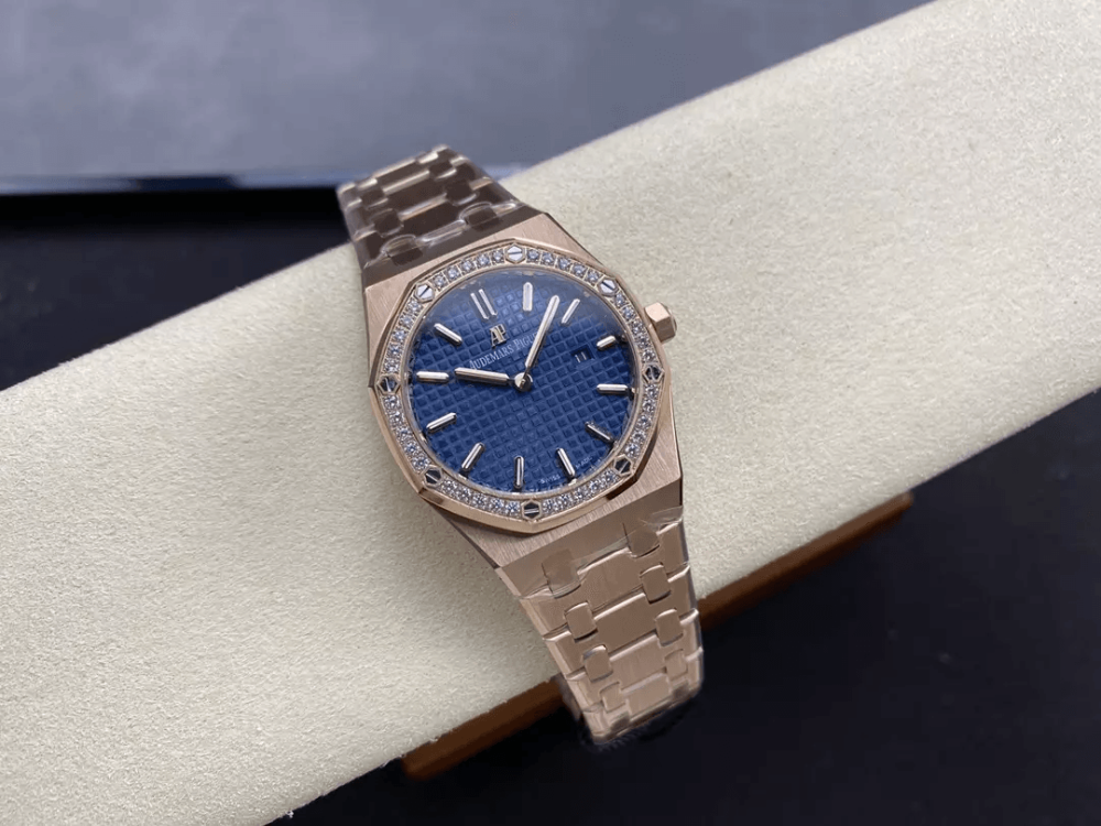 • ZF공장 오데마피게 레이디 로얄오크 블루 다이얼 다이아베젤 로즈골드 금통 33mm 여성용 67651