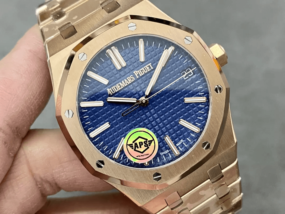 • APS공장 오데마피게 로얄오크 50주년 한정판 블루 텍스처 다이얼 로즈골드 금통 41mm 15510OR