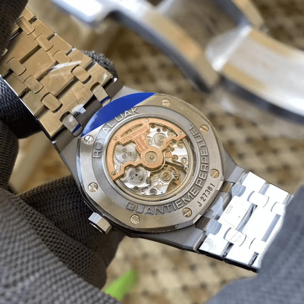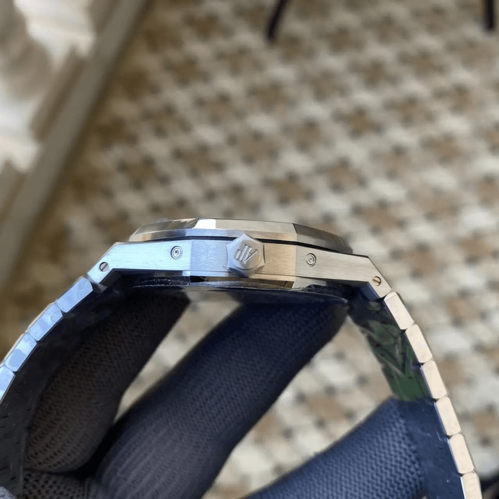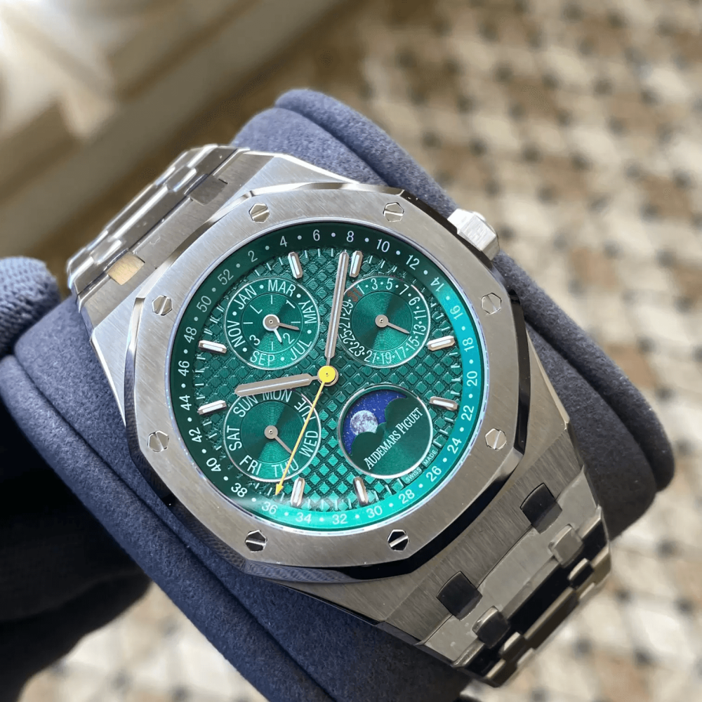 • APS공장 오데마피게 로얄오크 퍼페츄얼 캘린더 그린 다이얼 SS 브레이슬릿 41mm 26574