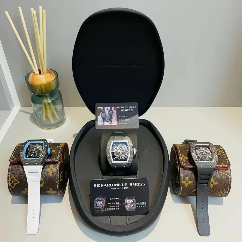 RM공장 리차드밀 블랙 카본 뚜르비옹 러버밴드 화이트 RM-055 > 리차드 밀-시계