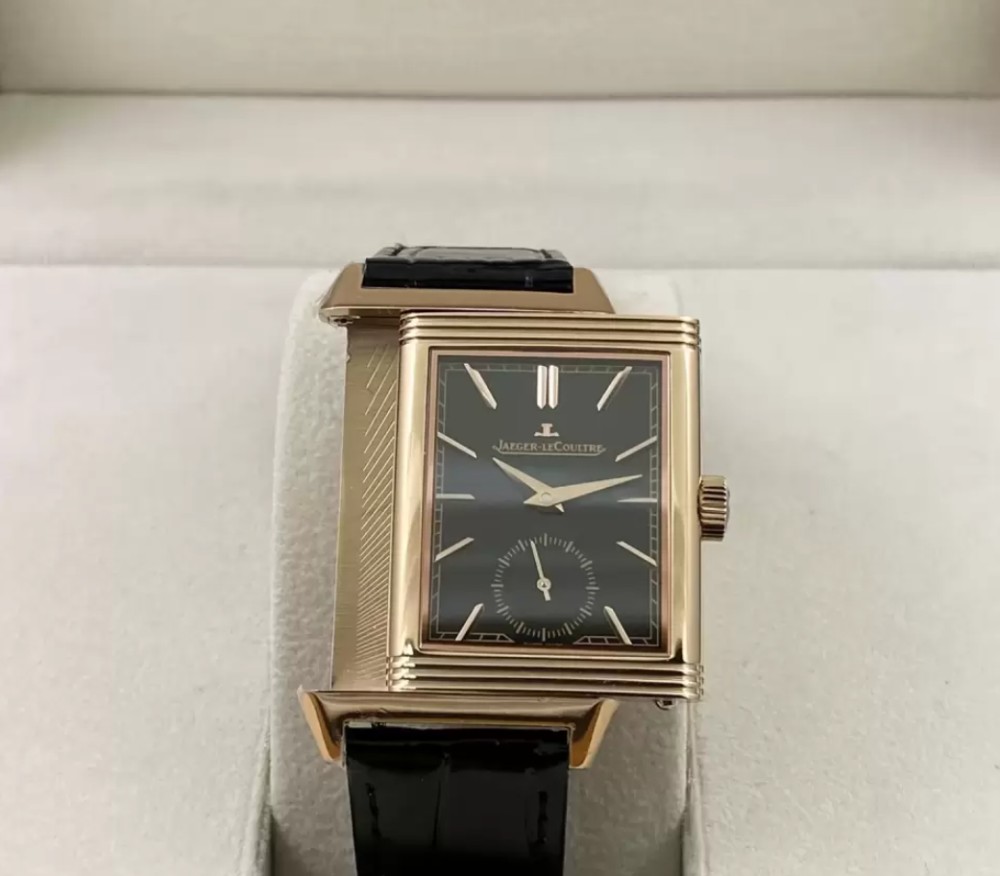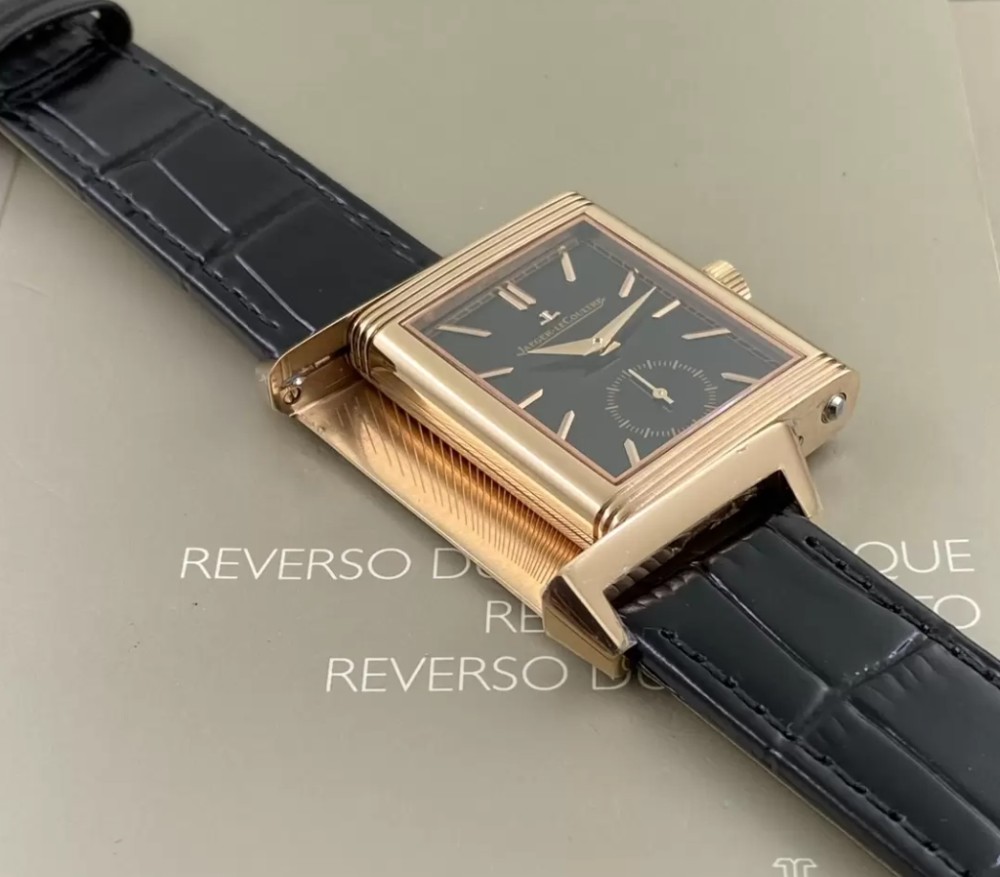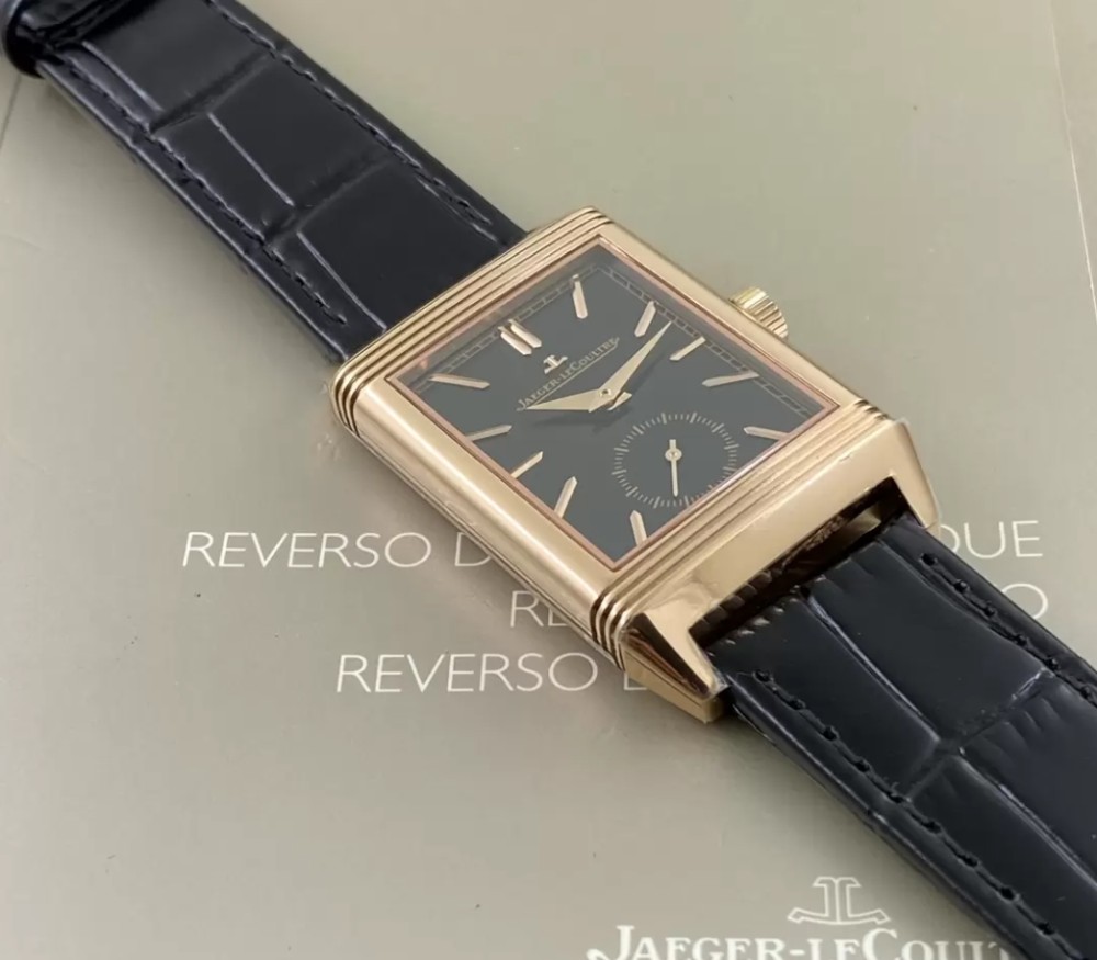 • MG공장 예거르쿨트르 리베르소 Tribute Monoface Small Seconds 블랙 다이얼 블랙 가죽 스트랩 713256J