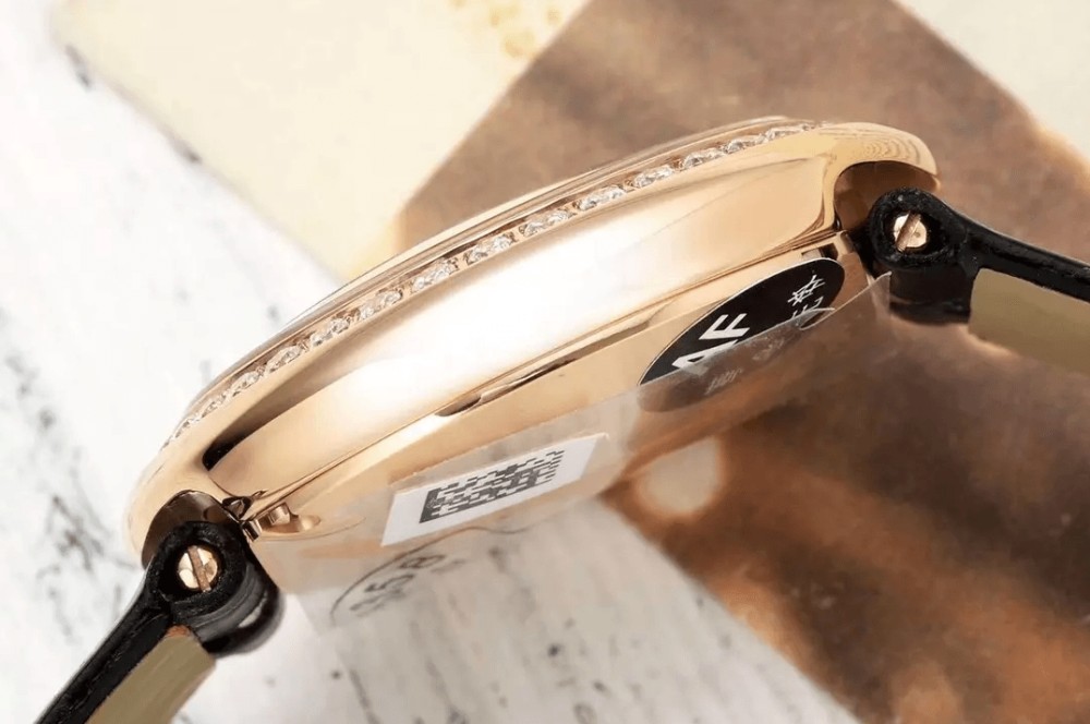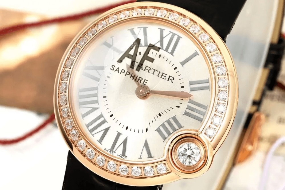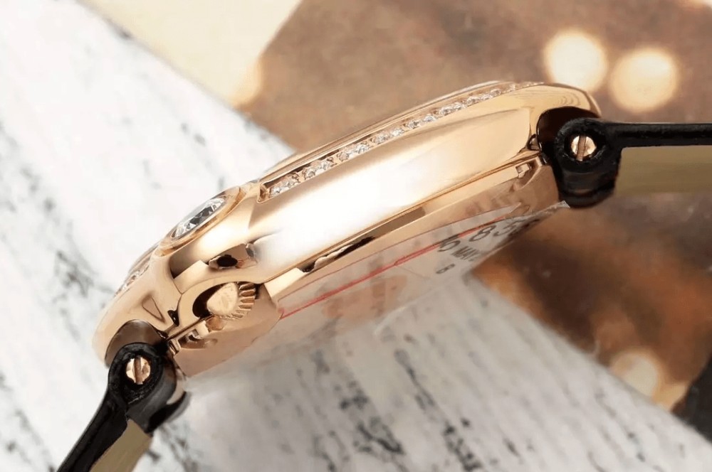 • AF공장 까르띠에 발롱 블루 드 까르띠에 화이트 다이얼 옐골 다이아 베젤 블랙 밴드 WJBL0005