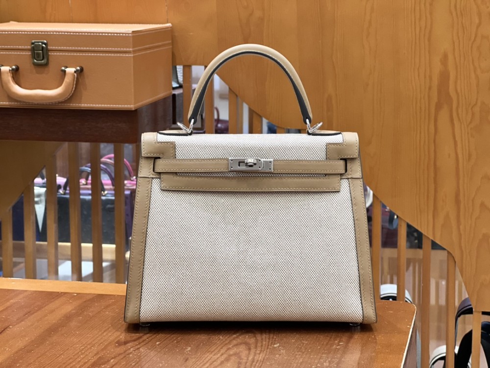 올수공 에르메스 켈리 25 토고 스위프트 캔버스 밀크티 컬러 실버 버클 > 에르메스-가방