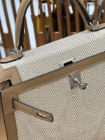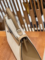 • 올수공 에르메스 켈리 25 토고 스위프트 캔버스 밀크티 컬러 실버 버클