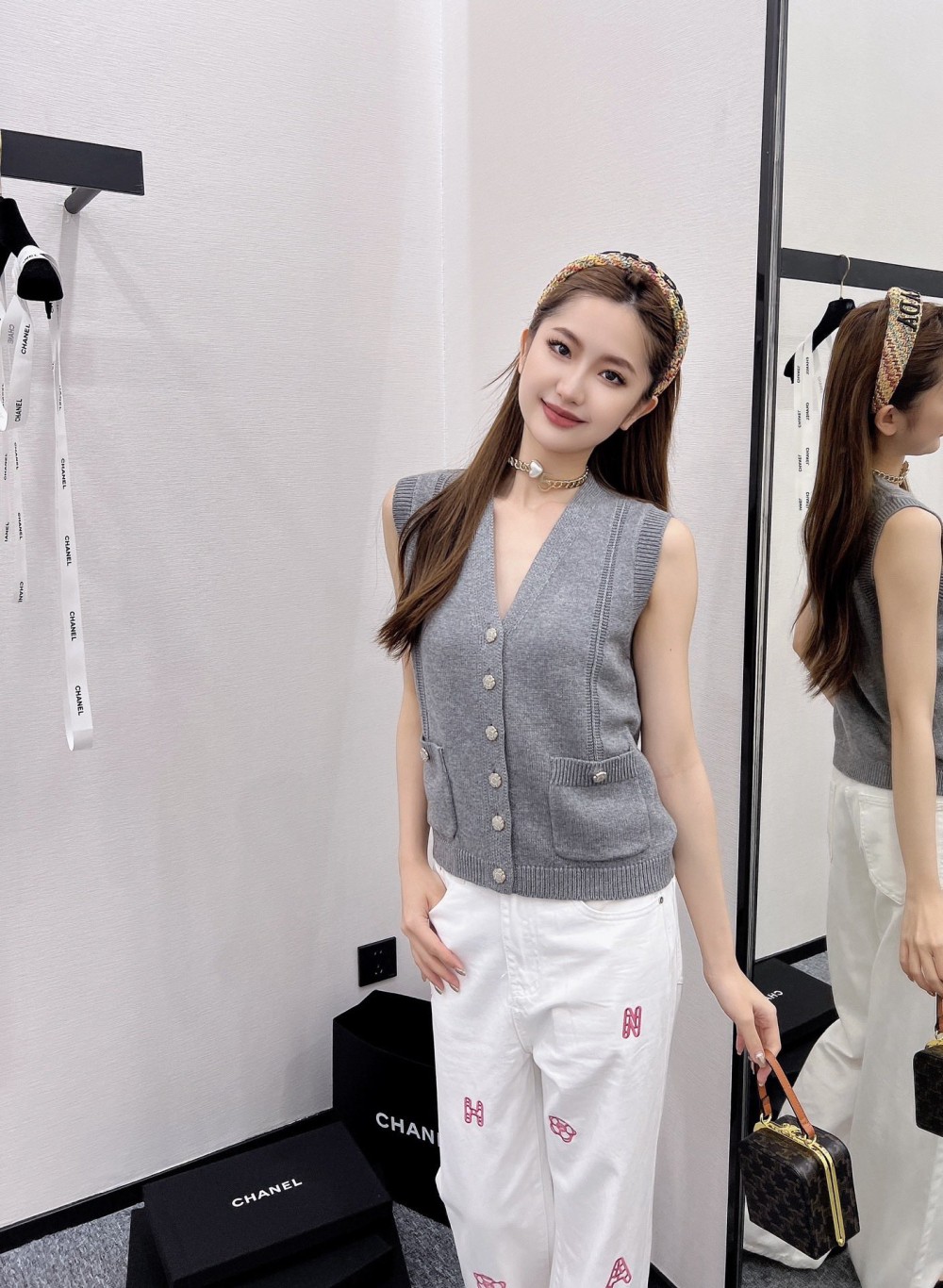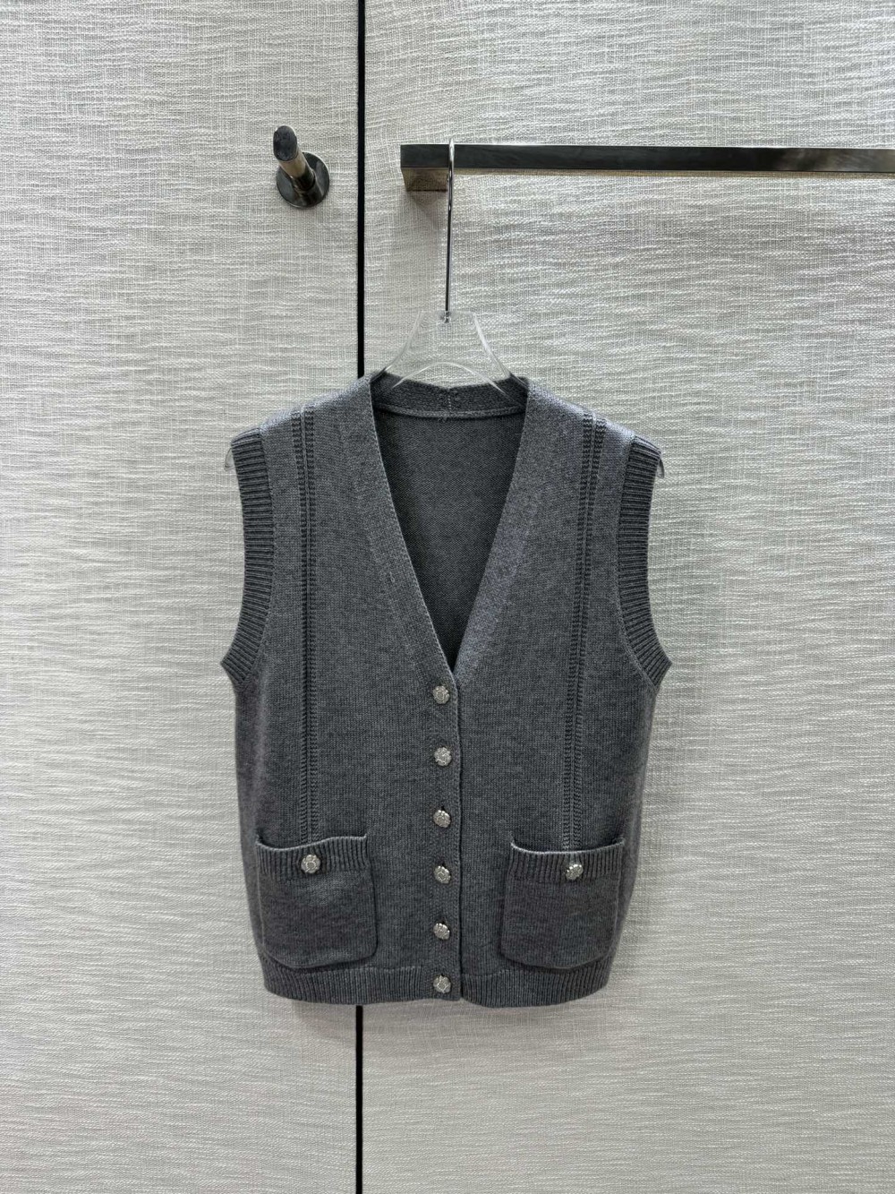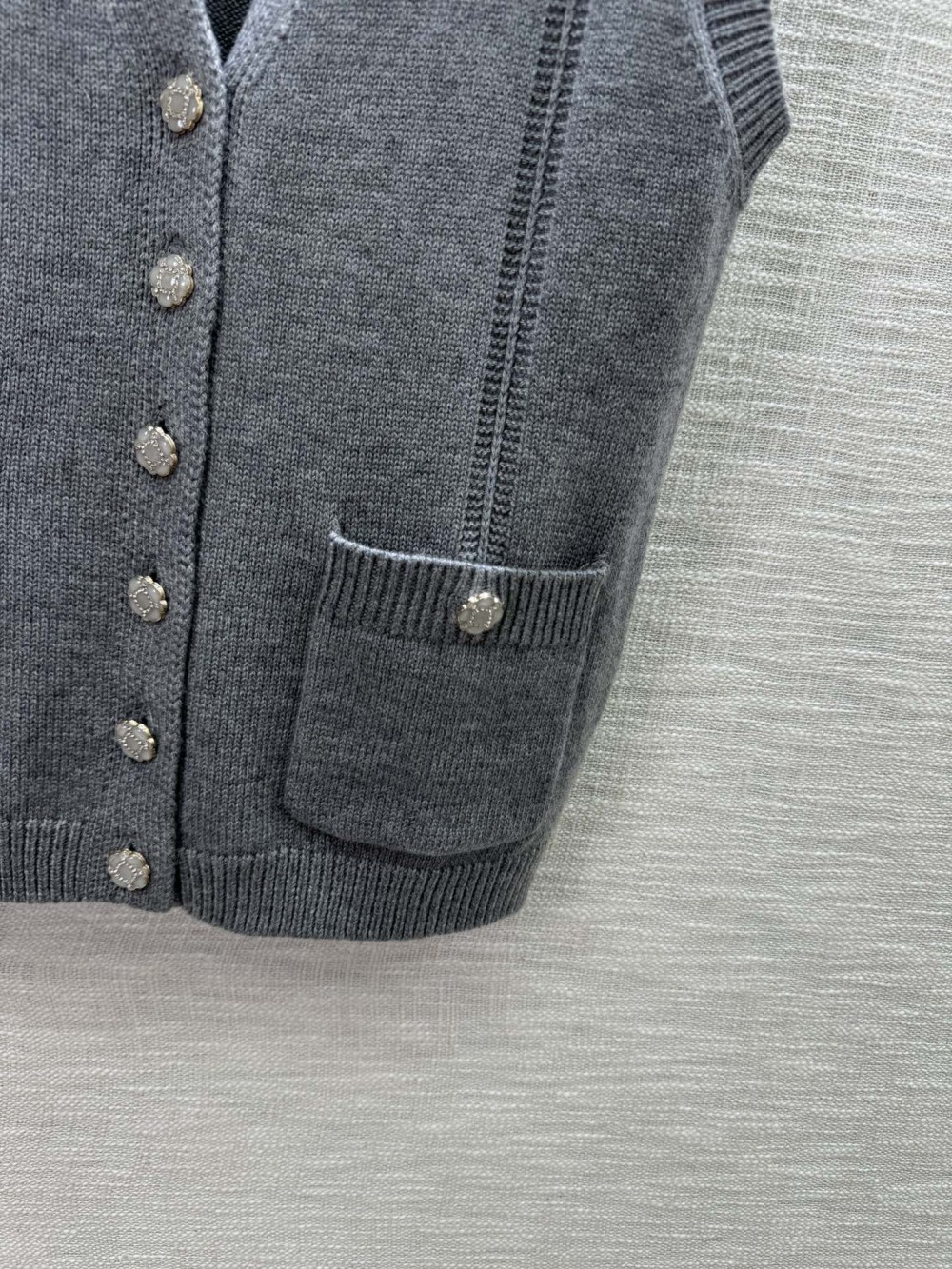 • 샤넬 24SS 클래식 더블 포켓 니트 조끼 그레이