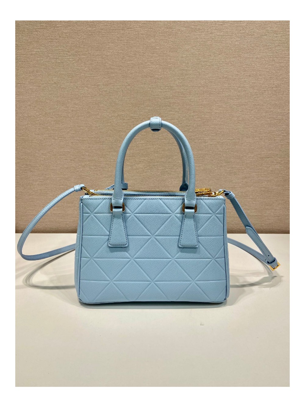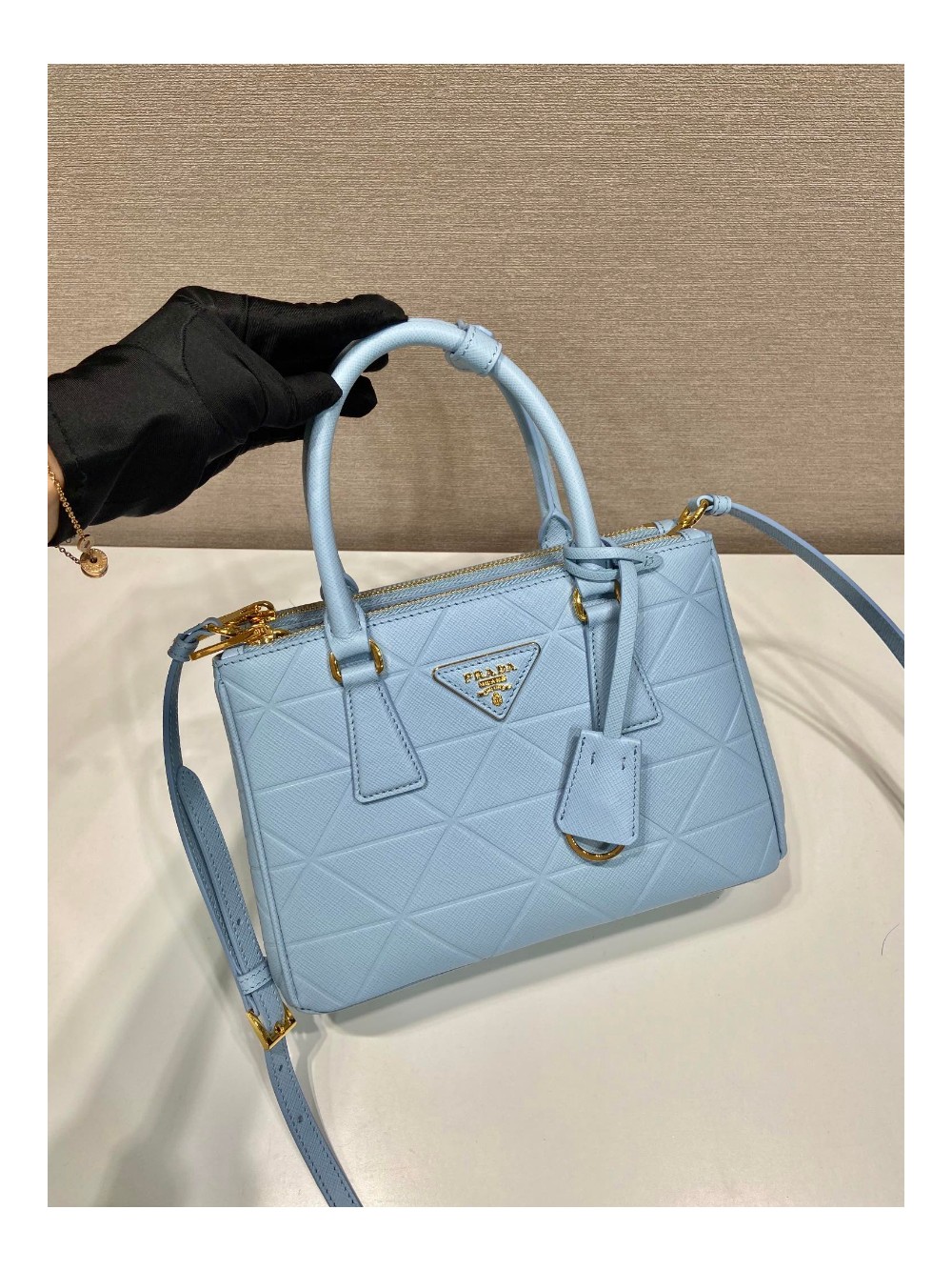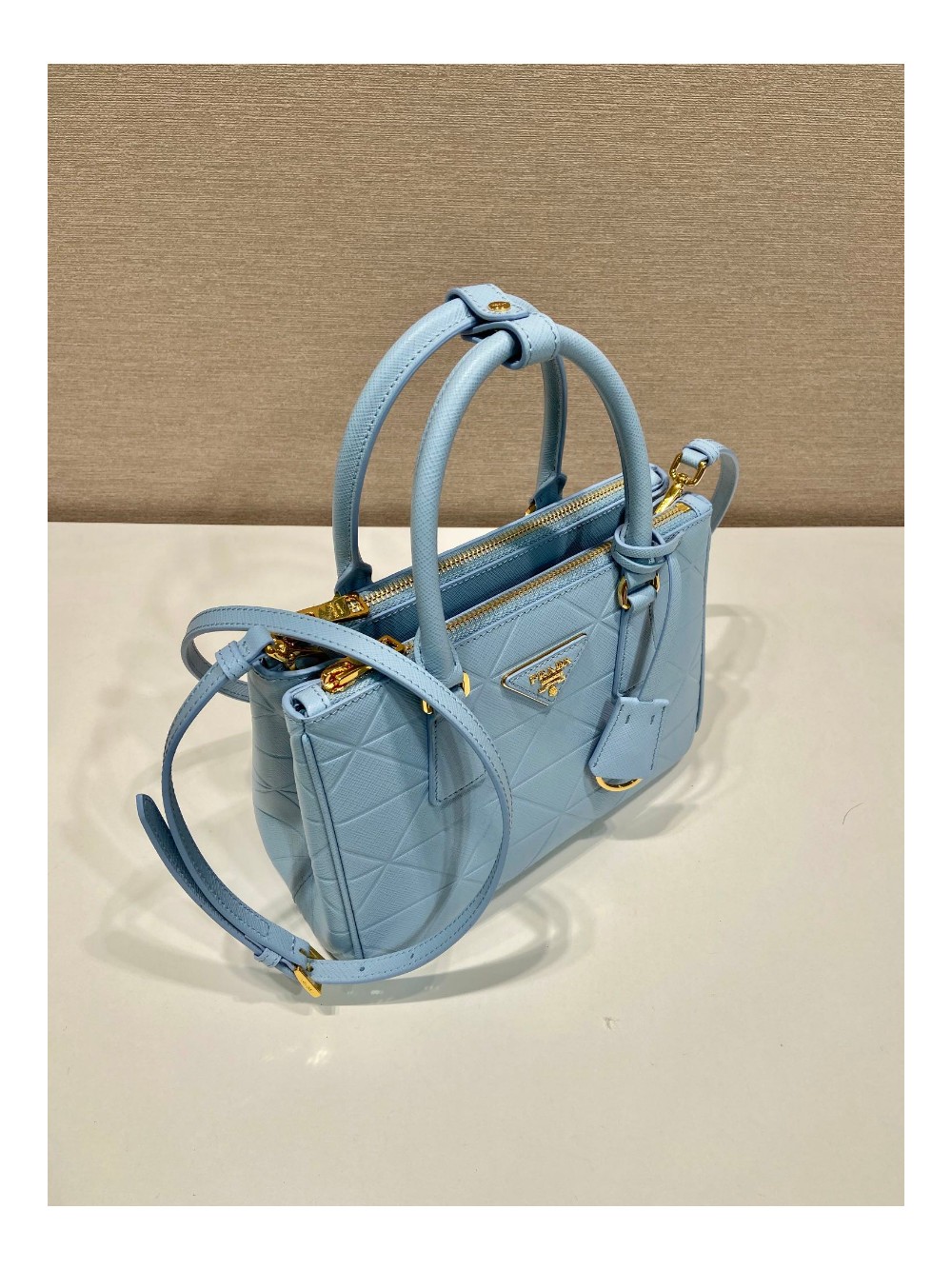 • 프라다 삼각로고 사피아노 갤러리아 토트백 네이비