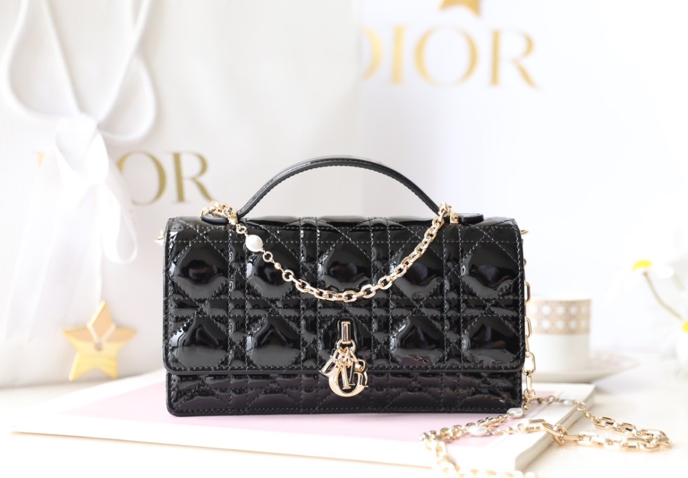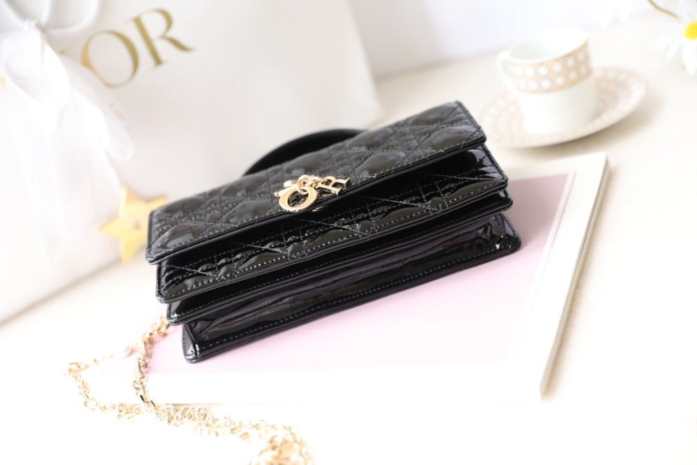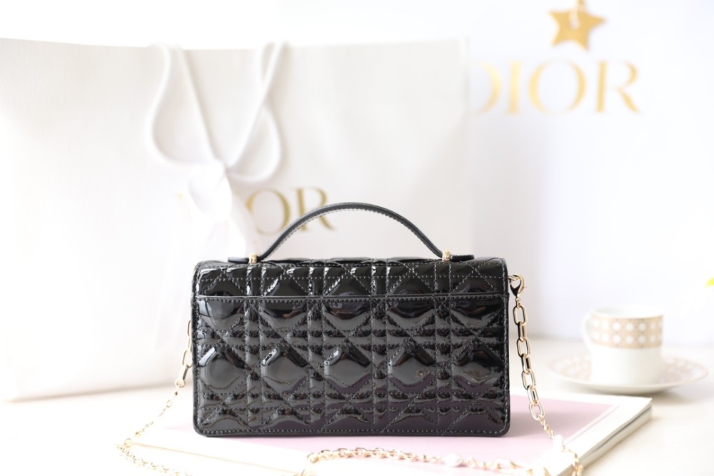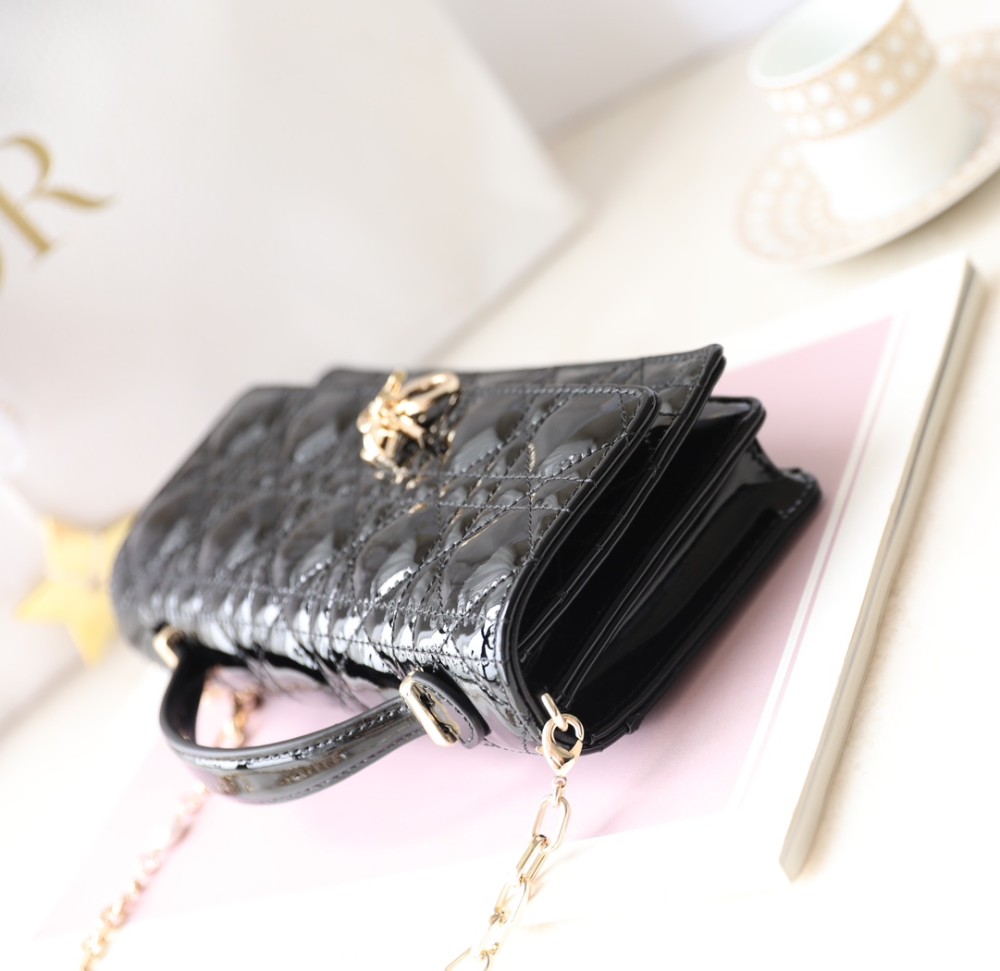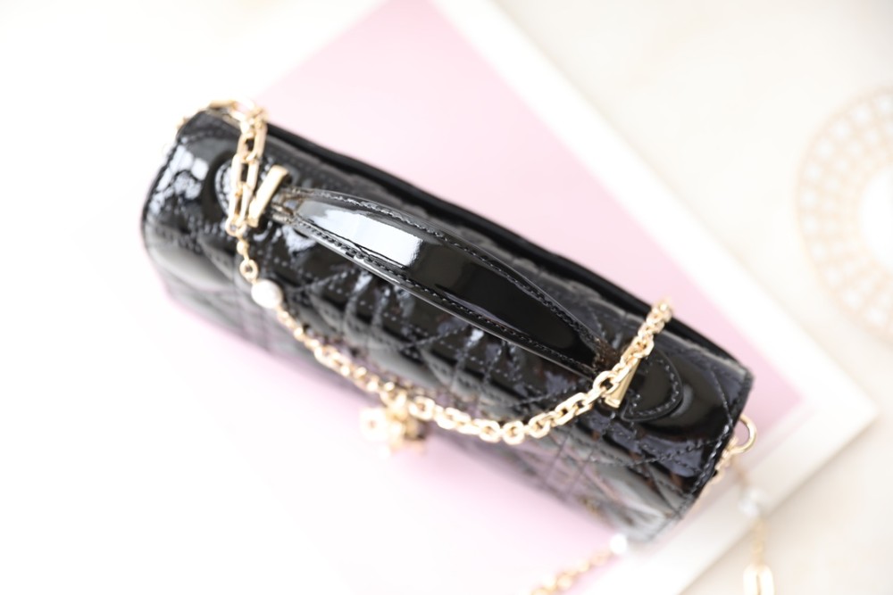 • 디올 레이디 탑 핸들 클러치백 블랙 유광