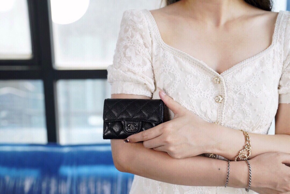 • 샤넬 클래식 똑딱이 카드지갑 캐비어 은장 02 AP0214