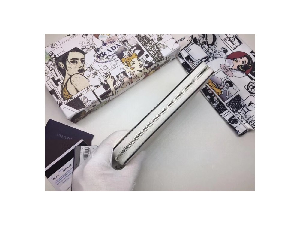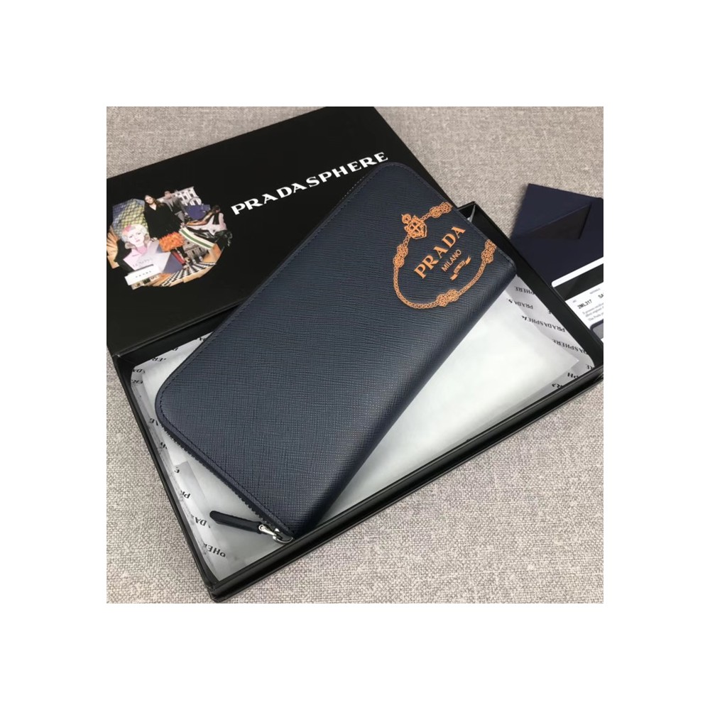 Prada Saffiano Mens Zip Round Wallet, 2ML317 - 프라다 2020 사피아노 지퍼 라운드 장지갑,PRAW0152,20CM.화이트,네이비 > 프라다-지갑